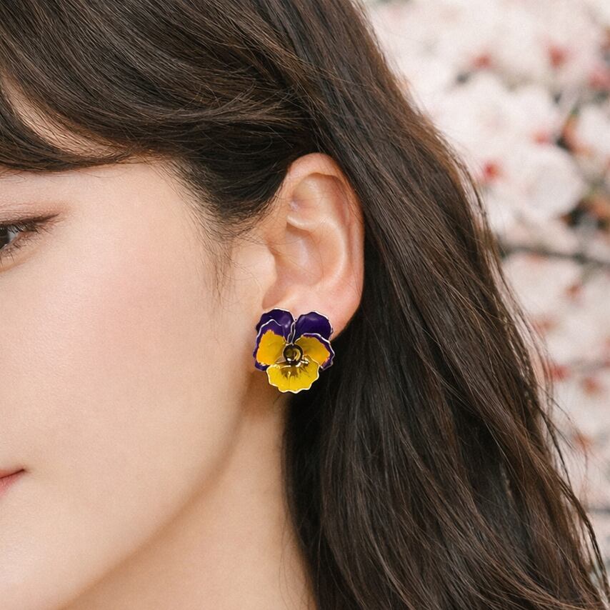 紫とイエローがやさしく重なり合うパンジーを、そのままアクセサリーにしました。