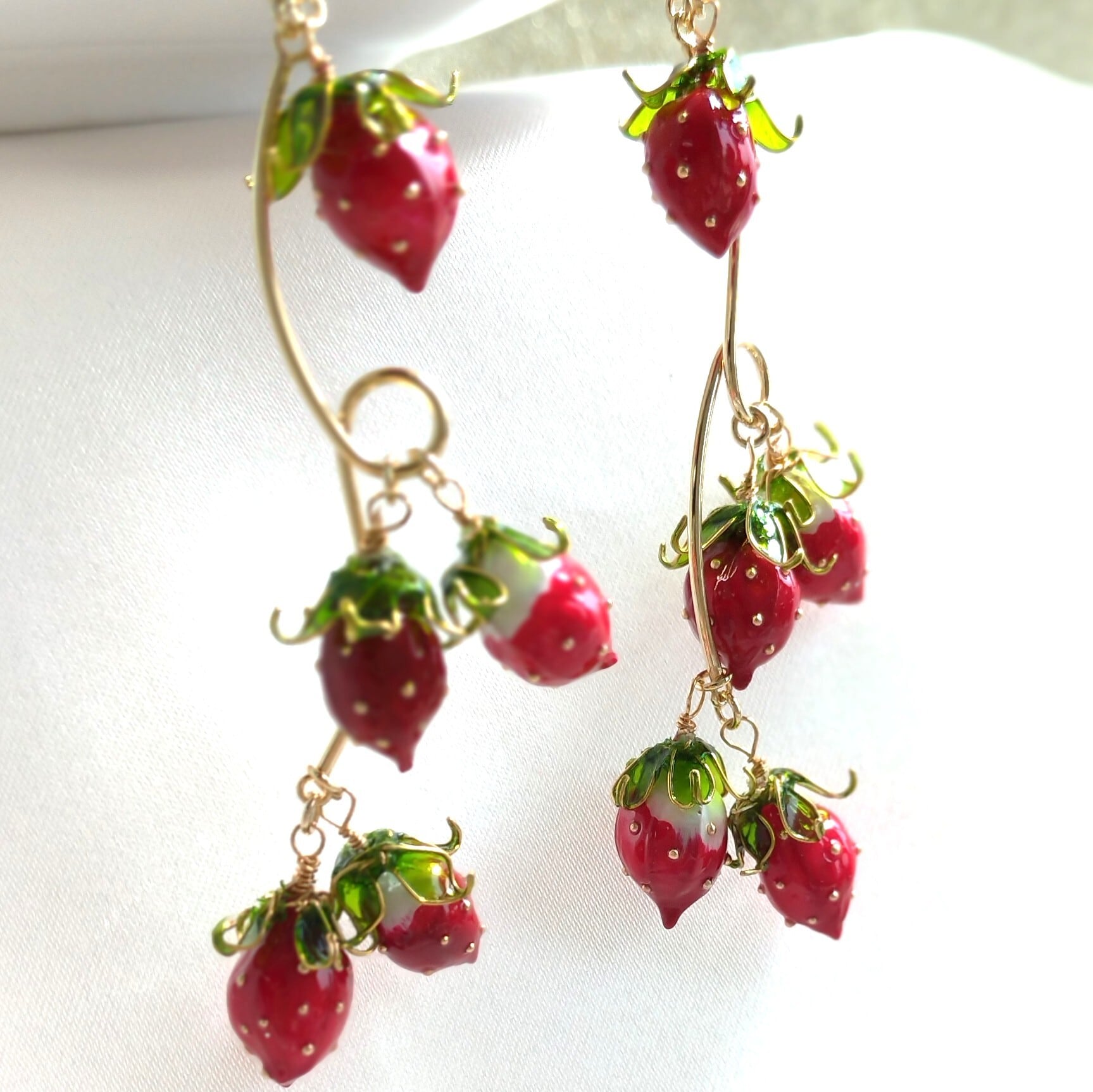 ワイヤーで作成したモチーフに、クリアのディップ液を浸して膜を張り、マニキュアで色をつけて作っています。マニキュアの色味によって、様々な表現ができます。パーツやビーズとの組み合わせで、表現の幅が広がります。