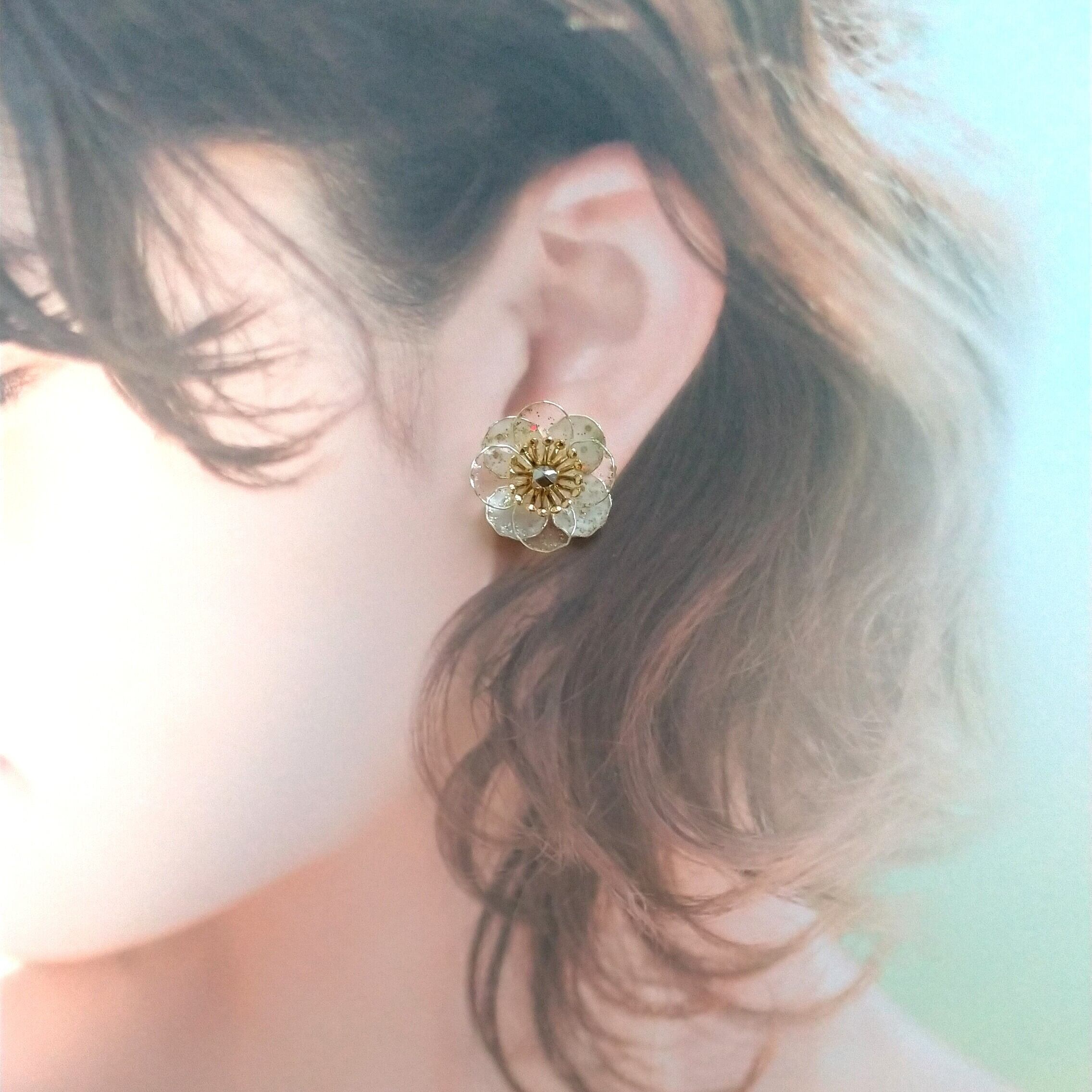 透明感のあるキラキラな花びらとホワイトの花びらの組み合わせが、とても上品で耳元を華やかにしてくれます。