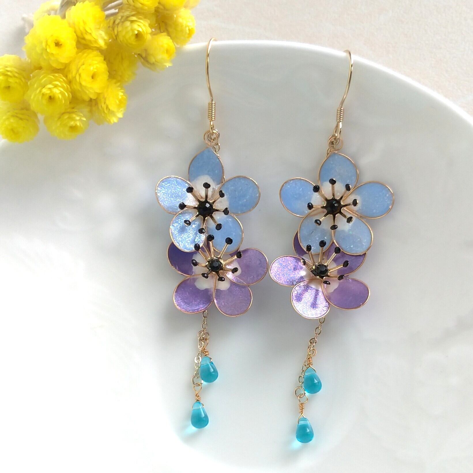 ネモフィラの花をモチーフにした雫が揺れるピアスです。