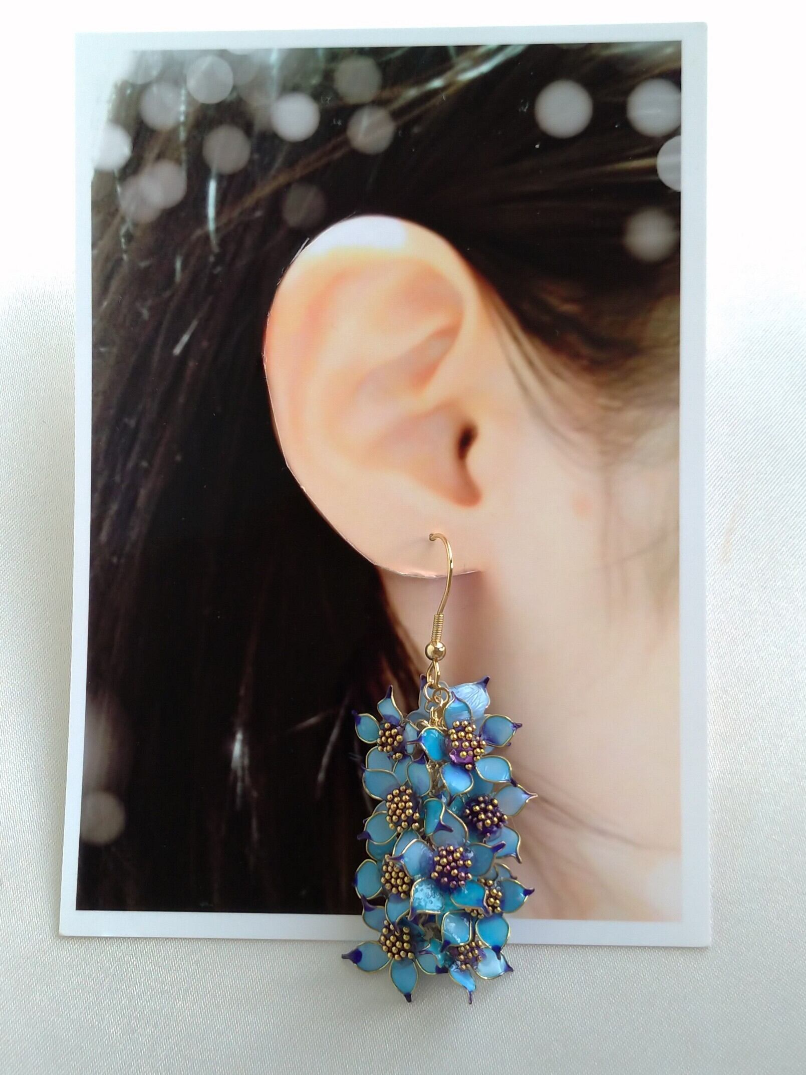 ※花の作りが繊細になっておりますので、着用時には花びらをつかまないよう、十分ご注意ください。花全体をつかんで、耳にはさんでください。