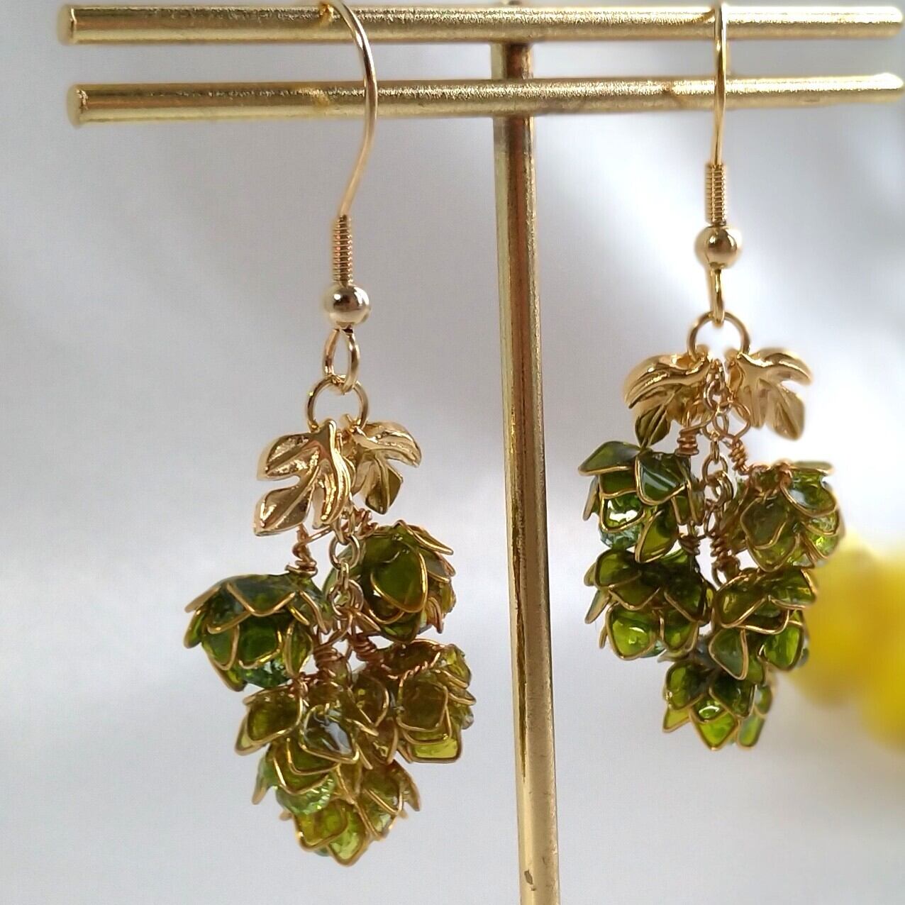 ホップの黄緑色が、爽やかで、可愛らしく、耳元を華やかに演出してくれます。