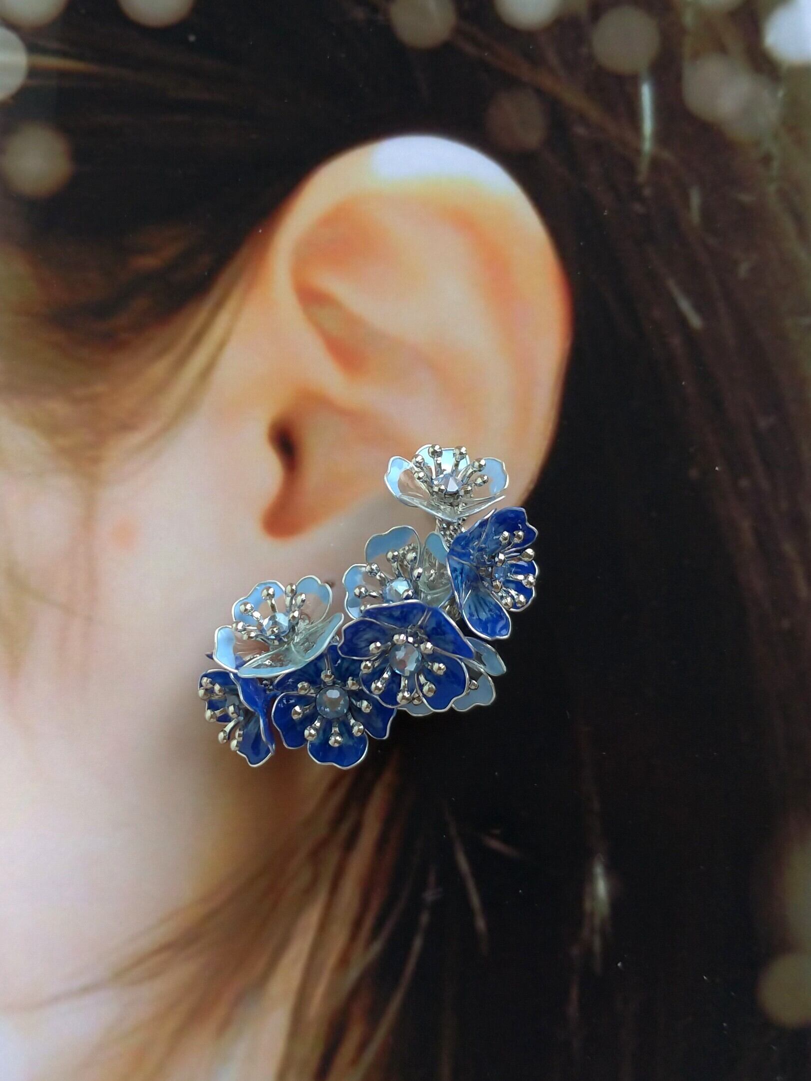 ブルーのネモフィラの花びらは中心から外に向かって、だんだん濃淡がかわるように着色しておりますので、本物のネモフィラの花のようなアクセサリーをお楽しみいただけると思います。