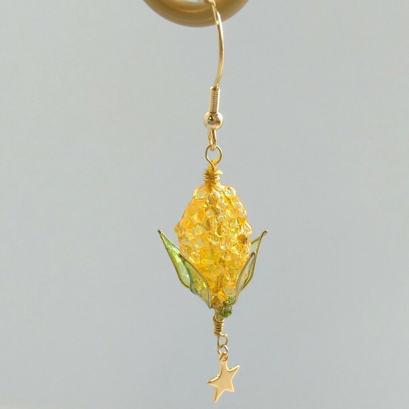 夏らしいモチーフのとうもろこしが可愛らしく、耳元に華やかさをプラスしてくれます。