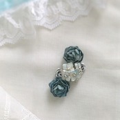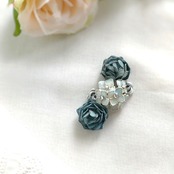 落ち着いたブルーグレーの花や水色の紫陽花が上品な、ディップアートで作成したイヤリングです。ブルーを基調としたブーケのように集められた花々が、耳元を華やかにしてくれます。