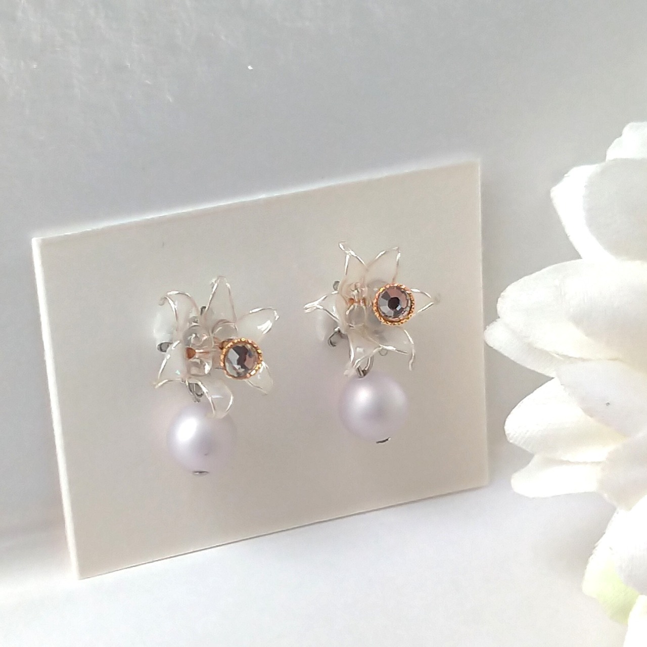 ユリとパールのピアス&ブローチセット 新作2025 ディップアート